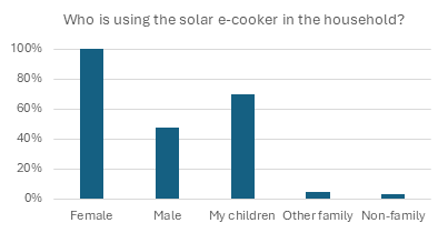 An unexpected outcome reported by women was the willing engagement of men and children in using the e-cooker, albeit mostly for reheating or boiling water (fig. 4).